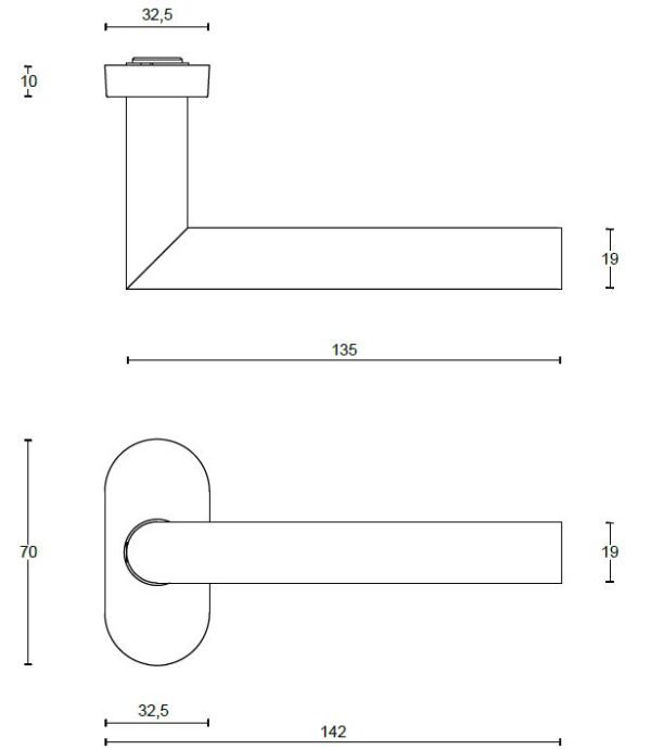 LET OP! Neemt u de deurklink in combinatie met sleutelplaatjes of een wc-sluiting dan moet de hart op hart afstand van de kruk tot het sleutelgat/wc-sluiting minimaal 72 mm zijn.