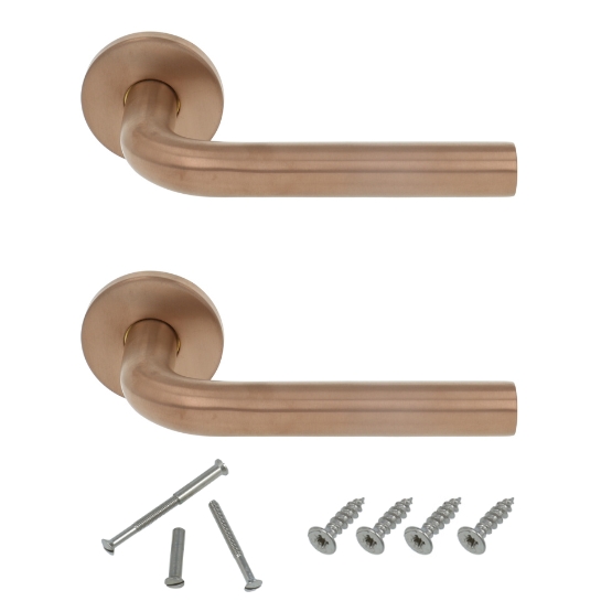 Met deze deurklink op ronde rozet haalt u een bijzonder stijlvolle deurklink in huis. De PVD mat bronzen deurklink op ronde rozet is geveerd en heeft een moderne uitstraling maar doet het, door het simpele design, ook goed in een wat klassiekere omgeving. Met deze deurklink haalt u een kwalitatief goede maar goedkope deurklink in huis. Het materiaal is RVS met een PVD mat bronzen coat.