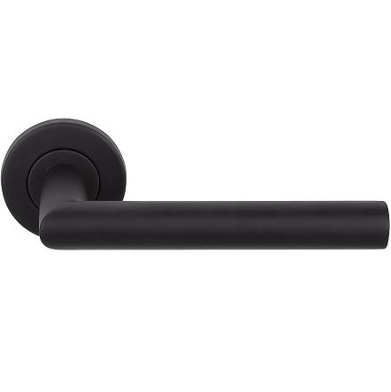 Met deze deurklink op ronde rozet haalt u een bijzonder stijlvolle deurklink in huis. De RVS zwarte deurklink op ronde rozet is geveerd en heeft een moderne uitstraling maar doet het, door het simpele design, ook goed in een wat klassiekere omgeving. Met deze deurklink haalt u een kwalitatief goede, maar goedkope deurklink in huis.
