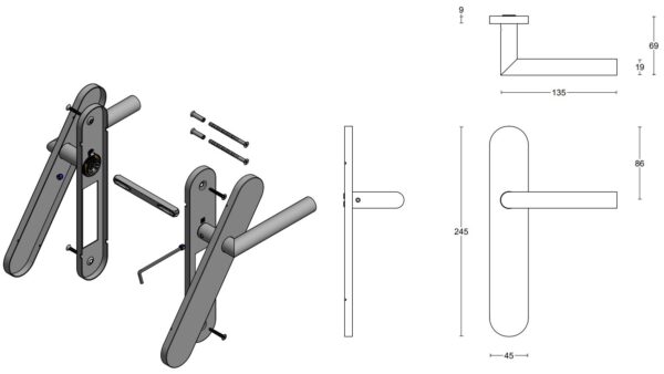 Deze deurklink is vast-draaibaar met metalen onderconstructie geveerd op schild. Het materiaal is rvs met een PVD mat gouden coat.