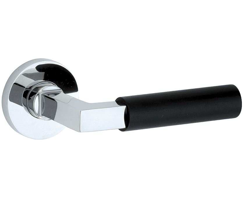 Deurklink op geveerd rozet Bauhaus ebben/Vivo glans chroom