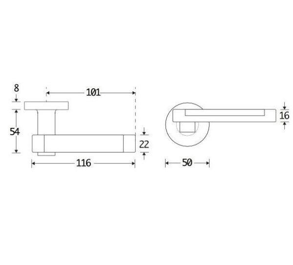 Deurklink op rozet. Het krukrozet is geveerd (voorkomt hangende deurklinken) en de schroefbevestiging op de deur is niet zichtbaar.