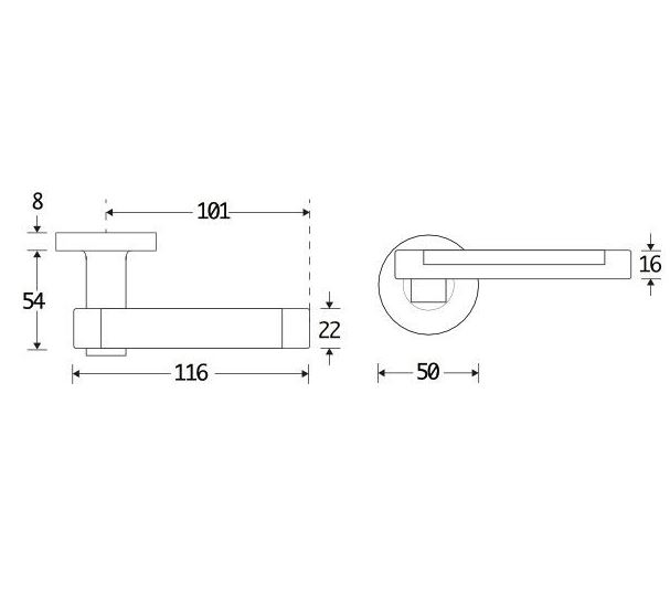 Deurklink op rozet. Het krukrozet is geveerd (voorkomt hangende deurklinken) en de schroefbevestiging op de deur is niet zichtbaar.