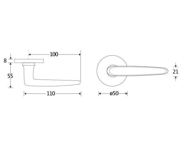 Deurklink op rozet. Het krukrozet is geveerd (voorkomt hangende deurklinken) en de schroefbevestiging op de deur is niet zichtbaar.
