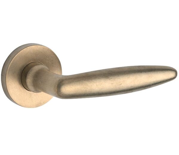 Deurklink op geveerd rozet Dudok/Vivo messing antiek
