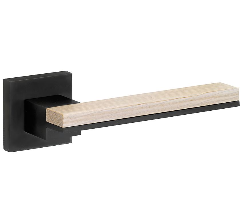 Deurklink op geveerd rozet Mimolimit PVD mat zwart/gebleekt eiken