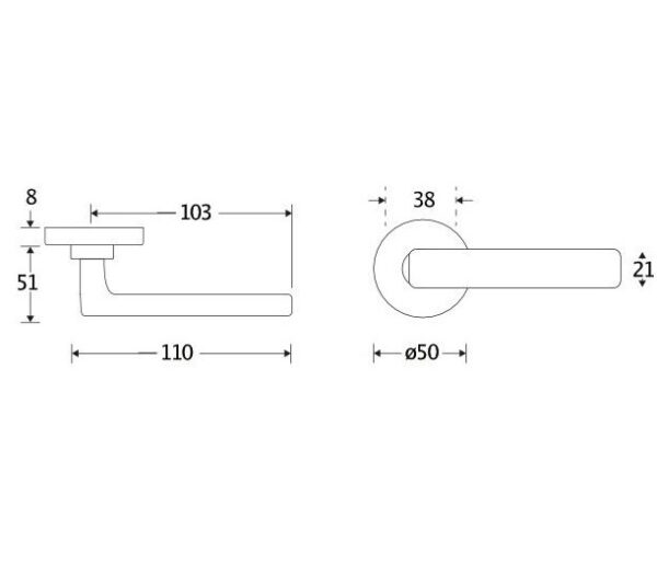 Deurklink op rozet. Het krukrozet is geveerd (voorkomt hangende deurklinken) en de schroefbevestiging op de deur is niet zichtbaar.