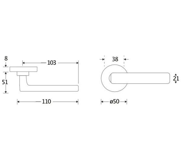 Deurklink op rozet. Het krukrozet is geveerd (voorkomt hangende deurklinken) en de schroefbevestiging op de deur is niet zichtbaar.
