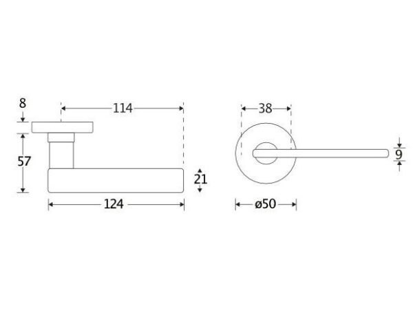 Deurklink op rozet. Het krukrozet is geveerd (voorkomt hangende deurklinken) en de schroefbevestiging op de deur is niet zichtbaar.