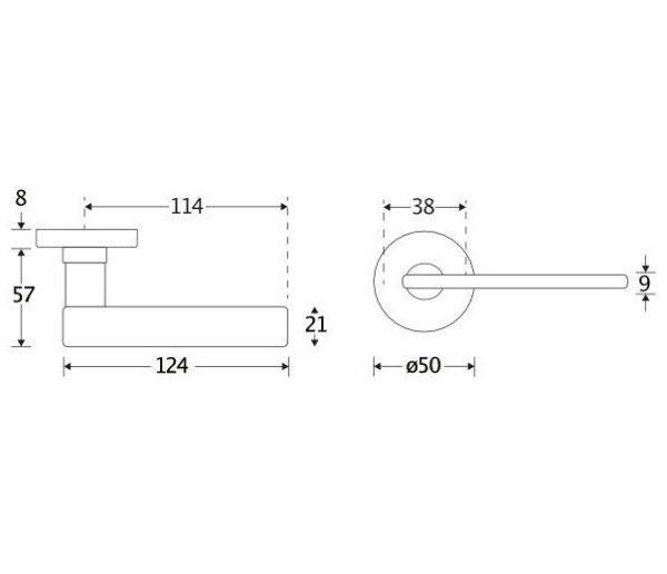 Deurklink op rozet. Het krukrozet is geveerd (voorkomt hangende deurklinken) en de schroefbevestiging op de deur is niet zichtbaar.
