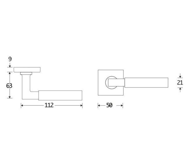 Deurklink op geveerd rozet verdekt Bauhaus ebben messing ongelakt