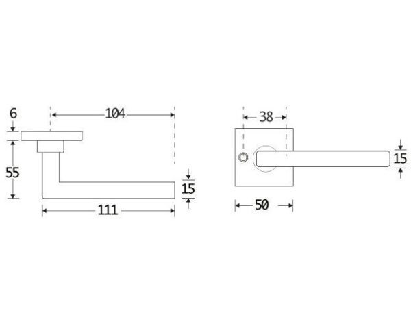 Deurklink op rozet verdekt. Het krukrozet is geveerd (voorkomt hangende deurklinken) en de schroefbevestiging op de deur is niet zichtbaar.