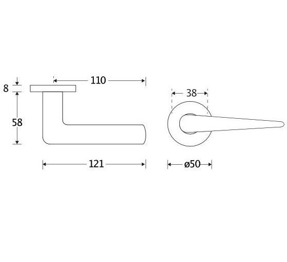 Deurklink op rozet. Het krukrozet is geveerd (voorkomt hangende deurklinken) en de schroefbevestiging op de deur is niet zichtbaar.