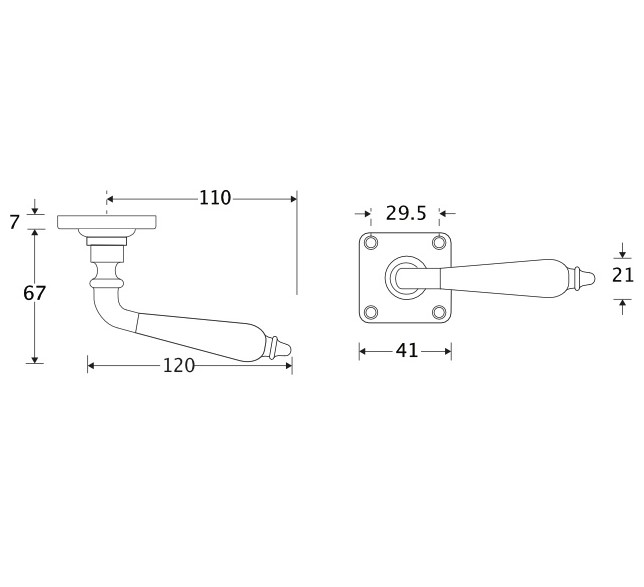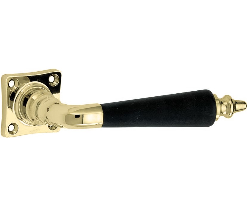 Deurklink op geveerd vierkant rozet Antique ebben messing ongelakt