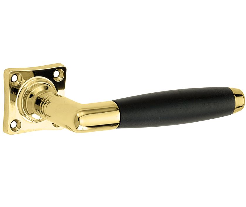 Deurklink op geveerd vierkant rozet Ton ebben messing gelakt