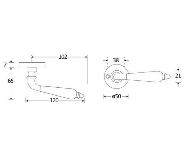 Deurklink op ongeveerd rozet Antique ebben glans nikkel