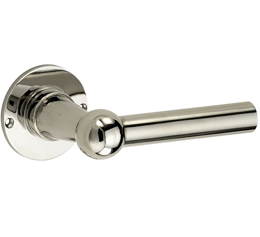 Deurklink op ongeveerd rozet Chemin de Fer 100mm glans nikkel