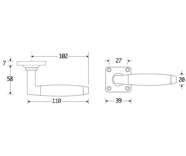 Deurklink op ongeveerd vierkant rozet Ton ebben mat nikkel ongelakt