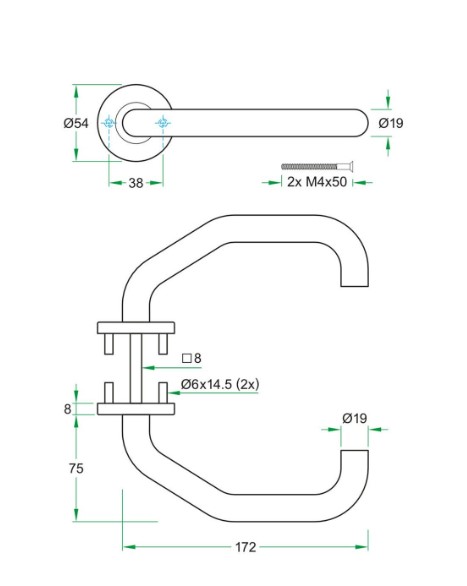 Deurklink vastgemonteerd met dubbelwerkende universele veer.