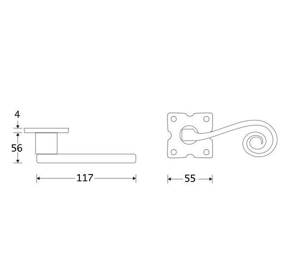 Deurklink op rozet. Het krukrozet is vastdraaibaar verbonden met de deurklink (voorkomt loskomende deurklink).