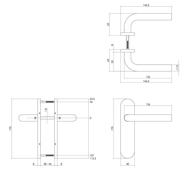 Deurklink Recht Basic op Ovaal Verdekt schild 170 x 40 mm Blind rvs