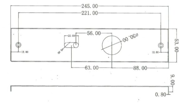 Langschild Sleutel rvs, slotafstand 56mm