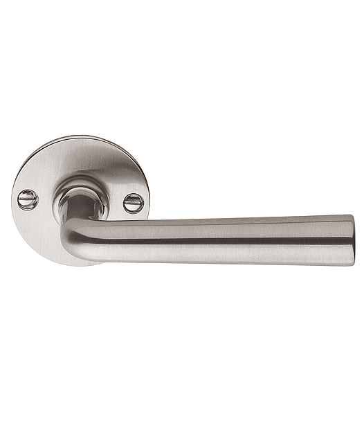 Deze deurklink is van Formani uit de serie TIMELESS, Inspired by Ferdinand Kramer. Het materiaal is mat nikkel. Deze deurklink is massief, ongeveerd op rozet.