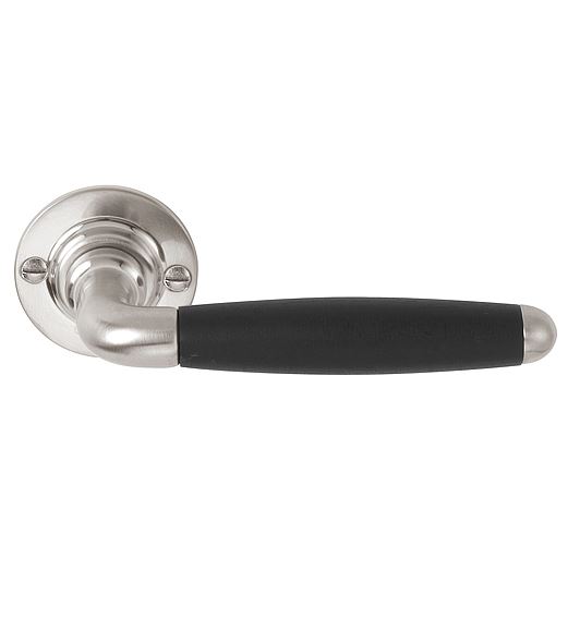 Deze deurklink is van Formani uit de serie TIMELESS. Het materiaal is mat nikkel en ebbenhout. Deze deurklink is massief vast-draaibaar, geveerd op rozet.