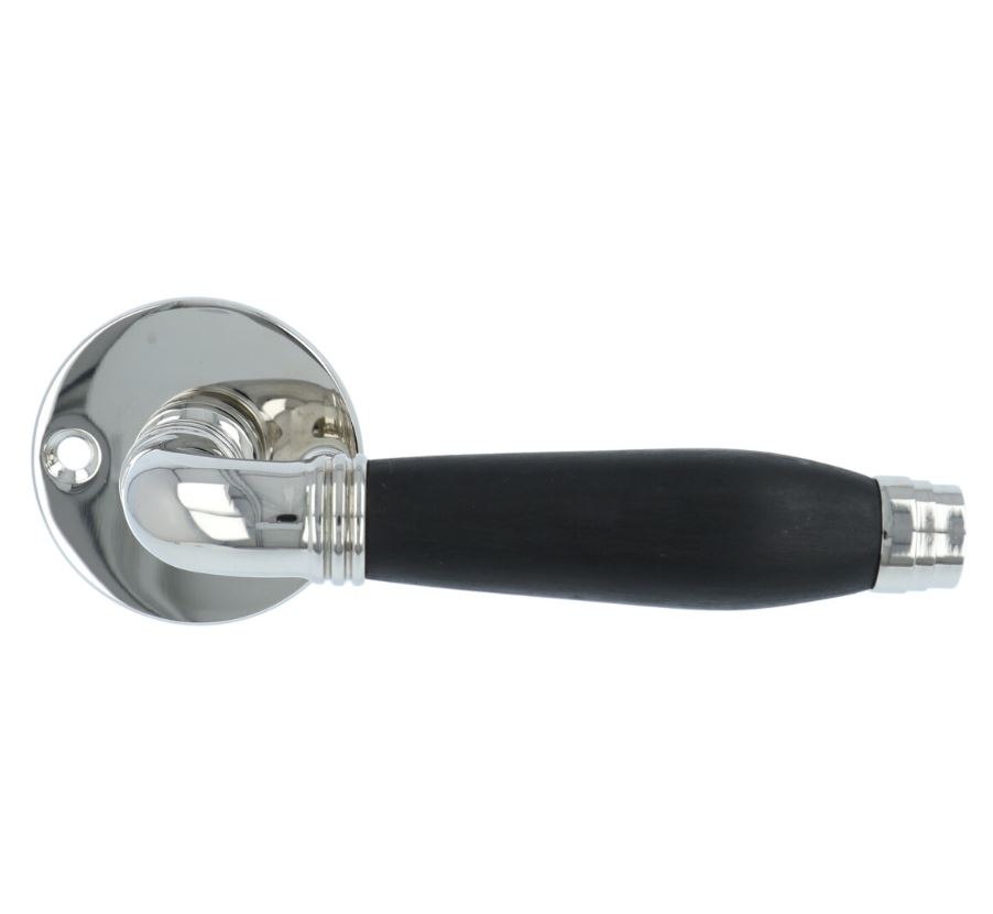 Het materiaal van deze deurklink is glans nikkel en ebbenhout. Deze deurklink is massief.