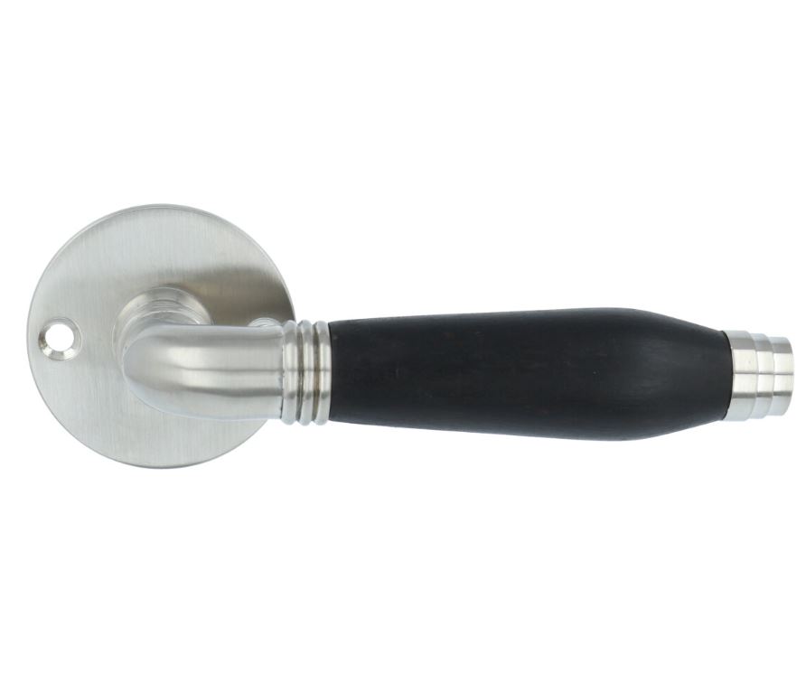 Deurklink Ton Model mat nikkel/ebbenhout op Rond rozet