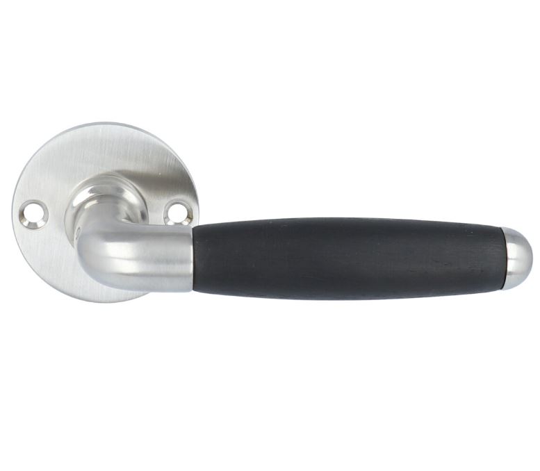 Deurklink Ton Model mat nikkel/ebbenhout op Rond rozet