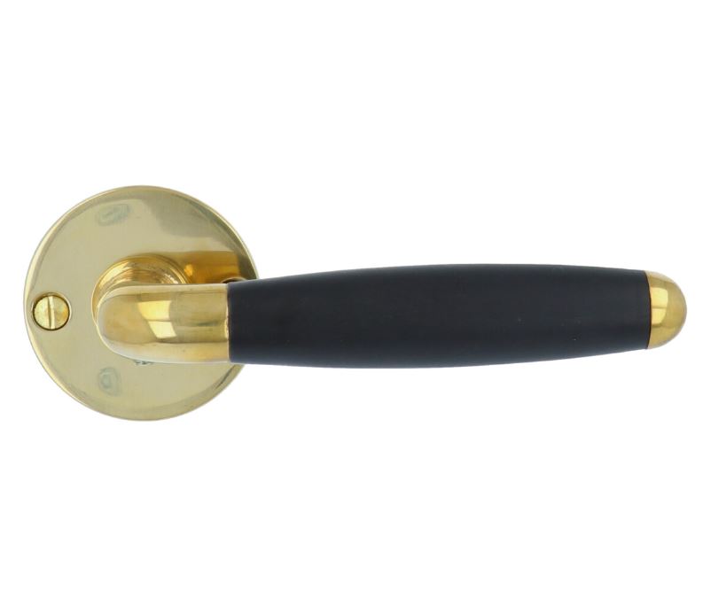Deurklink Ton Model messing ongelakt/ebbenhout op Rond rozet