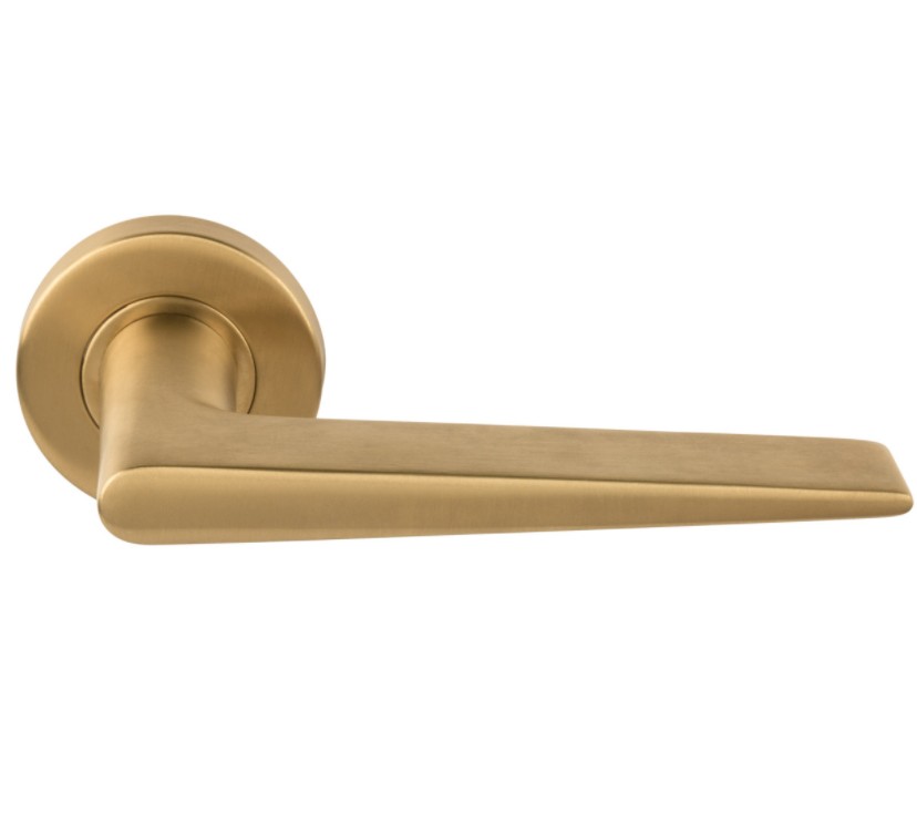 Deurklink BASICS LBXXIH op ronde rozet PVD mat goud