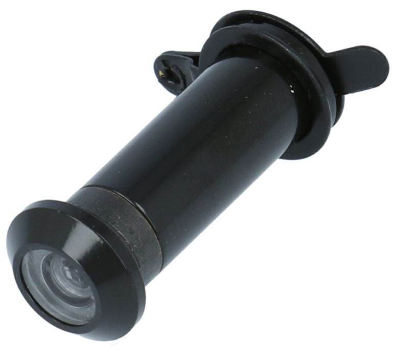 Deze zwarte deurspion past goed bij donkere voordeuren en heeft een zeer ruim gezichtsveld van 160°. Hij is verkrijgbaar voor deuren vanaf 31 mm tot deuren tot 56 mm en past esthetisch gezien goed bij zwart deurbeslag als zwarte deurklinken en scharnieren.