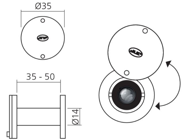 Voor deur van 35 tot 50 mm.