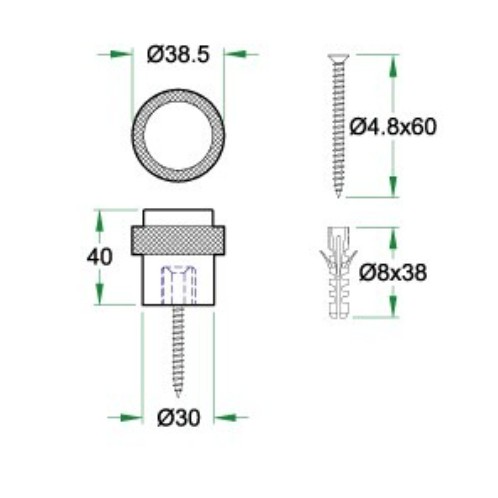 Deurstop vloermontage ø39x40mm PVD zwart