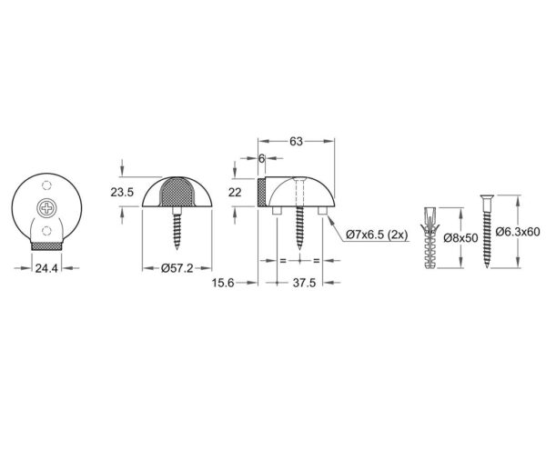 Maat ø 57,2×63 mm hoogte 23,5 mm