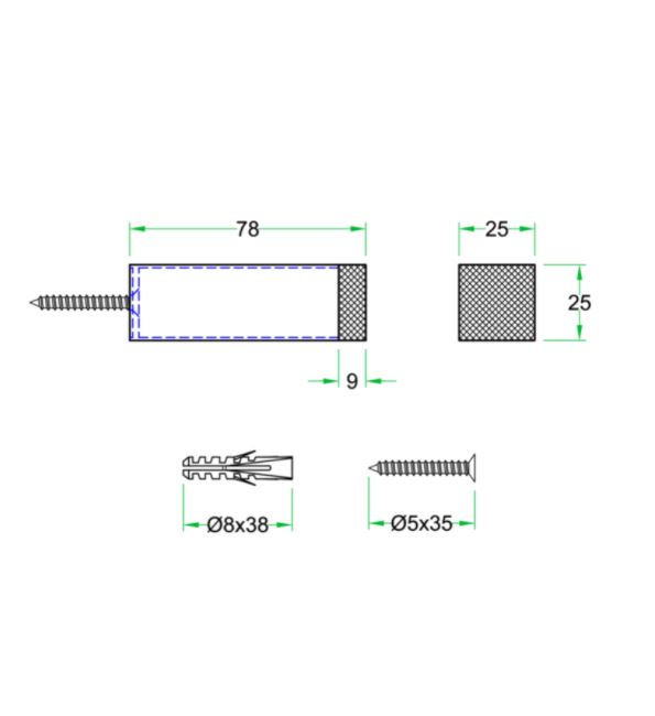 Deurstop wandmontage 25x25x78mm rvs mat