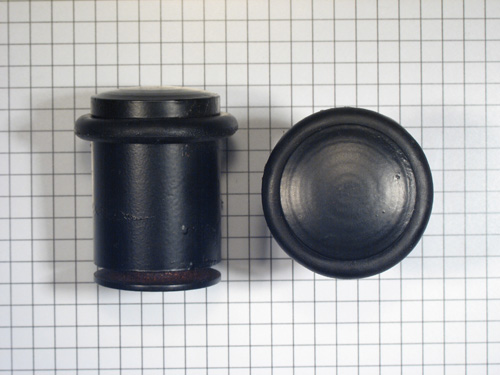 Deurstop zwart, 28 mm. Foto is genomen op ruitjes van 5 x 5 mm.