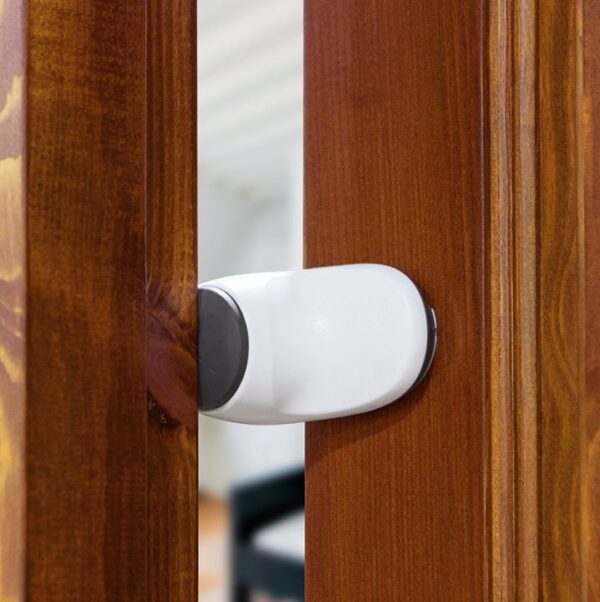 De maten van de deurstopper zijn 82x50x50 mm. De kleur is wit en grijs. Het materiaal is rubber.