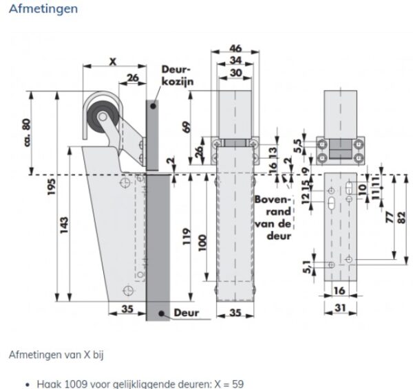 Voor montage aan de trekzijde van de deur.