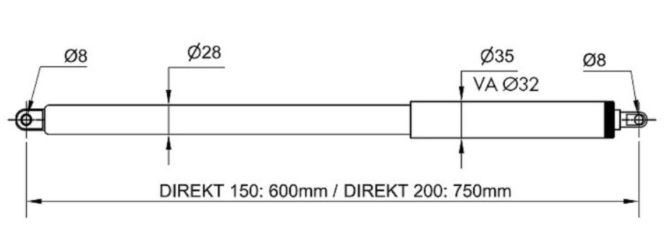 Hij werkt op dezelfde manier als een gasveer. Wanneer de poort open is, d.w.z. de zuigerstang is ingetrokken, duwt de gasvulling in de deurdranger de zuigerstang weer naar buiten, waardoor de deur wordt gesloten. Dit sluitingsproces wordt gedempt door hydraulische olie in de cilinder. Het gebruik van stikstofgas in plaats van een conventionele veer maakt veel hogere sluitkrachten mogelijk. Zo sluit de poortsluiter DIREKT de deur/poort altijd betrouwbaar, ondanks de kleine diameter.
