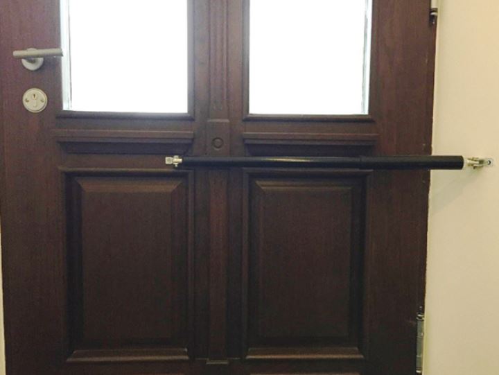 Voorbeeld 2:Â montage van de deursluiter DIREKT 150 op toegangsdeuren met in het midden gelaste scharnieren