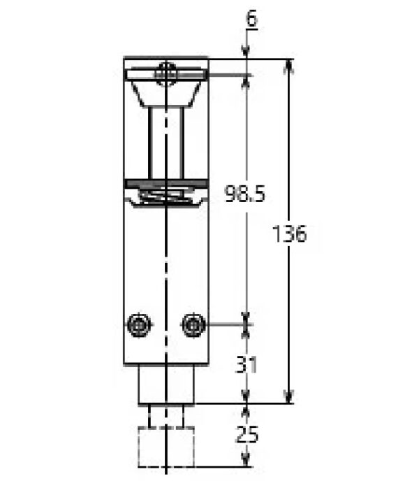Om de vastzetter te ontgrendelen moet u het metalen ontgrendelingsplaatje bovenop de behuizing (Standard) naar beneden drukken. De zuigerstang trekt zich automatisch terug en de deur kan weer vrij bewogen worden.