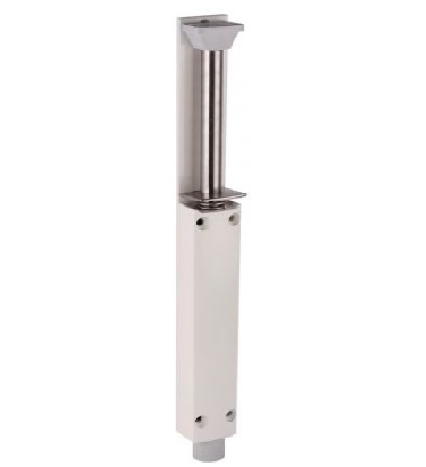 De deur wordt eenvoudig vast gezet in de gewenste positie door middel van het zacht met de voet naar beneden drukken van de zuigerstang van de deurvastzetter. Bij de Standard serie stapt u op de rubberen aandrukdop bovenop de deurvastzetter. Een kleine interne veer drukt de voet stevig tegen de vloer en voorkomt dat de deur beweegt.