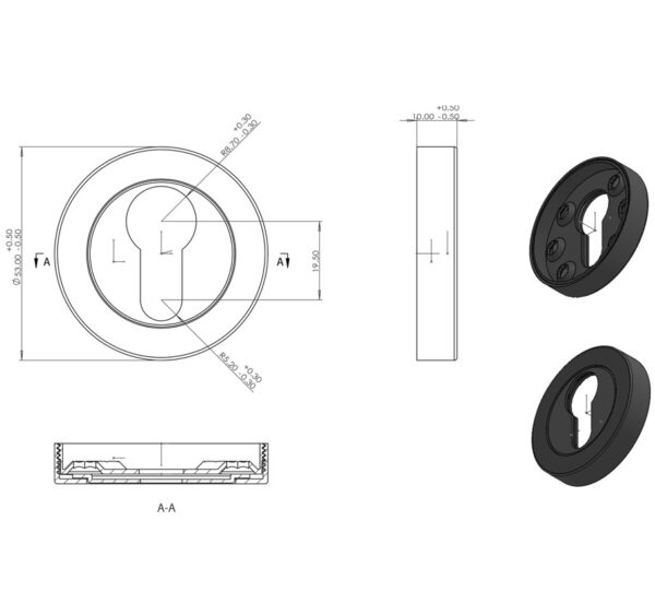 Rond rozet met cilindergat in kleur goud. Gemaakt van roestvrij staal, dus duurzaam, roestbestendig en eenvoudig in onderhoud.