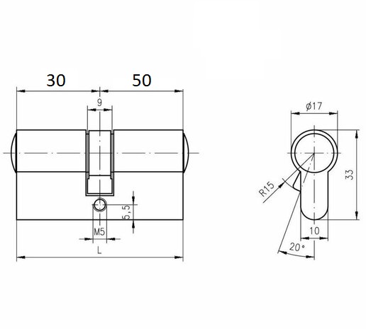 DOM Plura cilinder 30/50 SKG2 zwart
