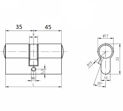 DOM Plura cilinder 35/45Â SKG2 zwart