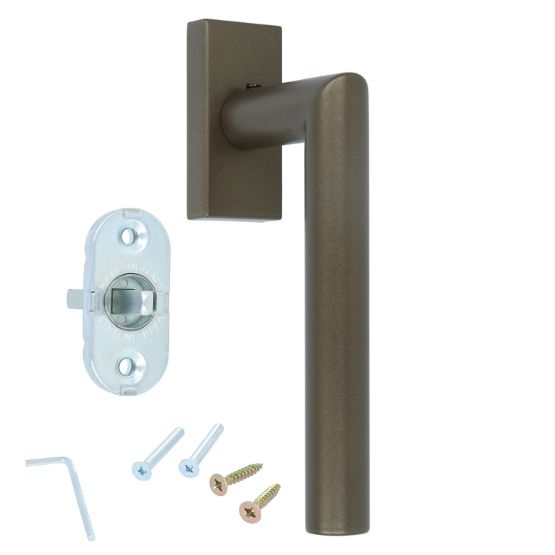 Dit is een draaikiepsluiting. Deze kunt u monteren op draaikiep ramen en deuren. (kiep kantel) De raamsluiting is van Formani uit de serie BASICS. Deze producten hebben als basismateriaal roestvast staal, voorzien van een brons kleurige coat.