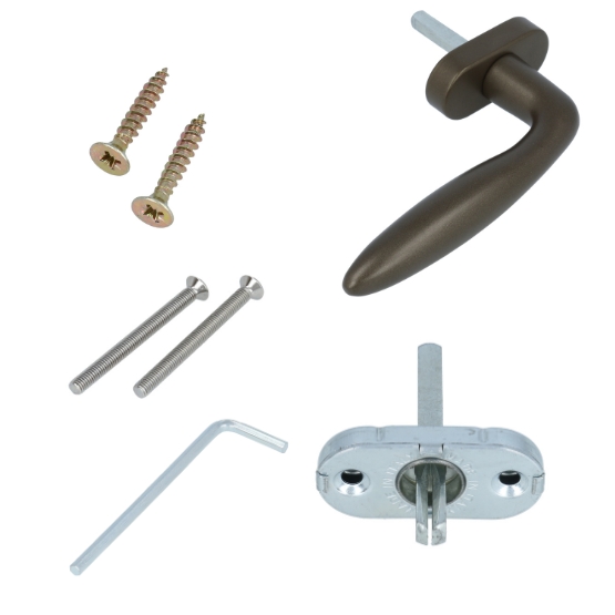 Dit is een draaikiepsluiting. Deze kunt u monteren op draaikiep ramen en deuren. (kiep kantel) De raamsluiting is van Formani uit de serie BASICS. Het materiaal is RVS met een bronzen coating.